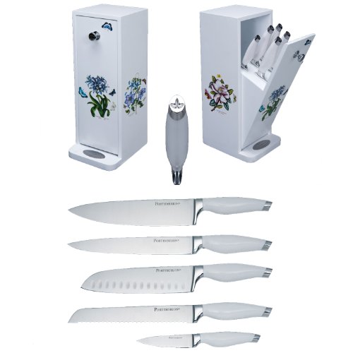 Portmeirion Botanic Garden kitchen knives set matches the famous Portmeirion dinnerware Each piece of the knife is handmade of the finest stainless steel material The design element is taken from the Botanic Garden dinnerwares flower The wooden block stores knives in an enclosed box keeping our
